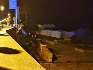 Il peggio è toccato a quella che, dopo avere sfondato la ringhiera, è precipitata sul vialetto pedonale di accesso al lido Marechiaro. L'altra, distrutta sul posteriore, ha terminato la sua corsa sulla recinzione del cantiere dirimpettaio.