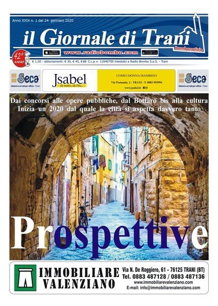 È in edicola il nuovo numero del Giornale di Trani, prima uscita del 2020. Titolo di copertina: «Prospettive». Dai concorsi alle opere pubbliche, dal Bottaro bis alla cultura, inizia un 2020 dal quale la città si aspetta davvero tanto.