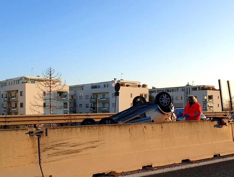 È ancora da definire il bilancio di un incidente avvenuto intorno alle 8 all'altezza dello svincolo Trani centro della strada statale 16 bis in direzione Barletta. Per cause ancora da accertarsi, due veicoli sono venuti in collisione fra loro ed il conducente di uno ha perso il controllo del mezzo ribaltandosi all'altezza della canalizzazione in prossimità della corsia di accelerazione dello svincolo Trani centro.