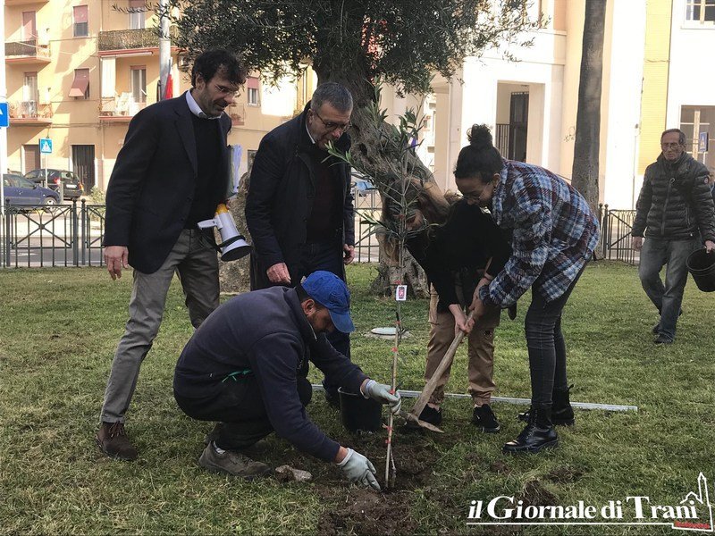Cinque alberi d’ulivo per la scuola Giustina Rocca e altrettanti per la Bovio sono stati donati da Cgil Spi Bat e piantati questa mattina nelle aiuole antistanti i due istituti scolastici.