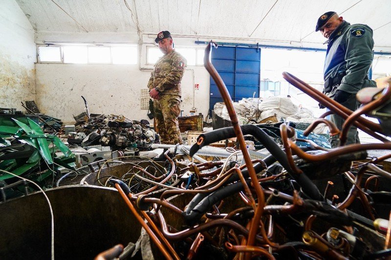 sequestrate, infatti, sono stati rinvenuti parti di carrozzeria di autoveicoli, componenti meccaniche ed elettroniche oltre che contenitori di sostanze pericolose quali oli esausti, vernici e solventi abitualmente impiegati per le riparazioni.