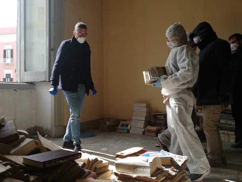 Sono stati raccolti 10mila euro da privati e altri 10mila li ha stanziati il Comune - spiega Bottaro -. Il primo intervento lo abbiamo fatto a marzo dell'anno scorso con il recupero di circa 500 volumi. Oggi abbiamo salvato la parte più cospicua del patrimonio librario abbandonato a palazzo Vischi. I volumi saranno portati a Potenza in un centro specializzato per la sanificazione. Ringrazio tutti i volontari che hanno dedicato questa giornata al recupero materiale dei libri. Ringrazio pubblicamente, ed in rigoroso ordine cronologico, chi ha sostenuto e finanziato con un contributo questa iniziativa: International inner wheel club di Trani; Mimmo de Laurentis; Stefano Martinelli; Carlo Avantario; Exprivia Spa; Tonino Lacalamita; Maria Storelli; Auser insieme Trani; Michele Rizzi; Francesco Paolo Caffarella; Francesca Zitoli; Formedil; Stefano Mastromauro; Fabrizio Ferrante; Renato Mastrulli; Di Gregorio Snc».