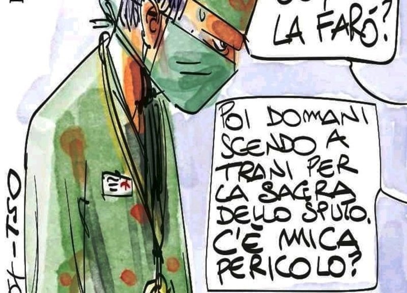 Trani si è ritrovata, all'improvviso, al centro della vignetta del disegnatore Makkox, sul Foglio, venendo descritta come «la città della sagra dello sputo». Il disegno ritrae un medico, sfinito, bersagliato dalle domande di uno pseudo paziente, il cui unico vero male è non sapere rinunciare alle abitudini di tutti i giorni, che i decreti del governo stanno progressivamente ridimensionando.