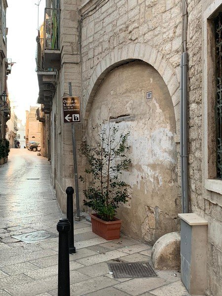 Si tratta di un tratto di via D'Angiò, la quale costeggia Palazzo Carcano ed unisce Piazza Re Manfredi con via Beltrani. In sostanza si tratta della chiusura di un arco a volta posto su strada pubblica. Con la presente rlivolgiamo istanza affinché questo tratto di strada venga riconsegnato alla città, demolendo tale chiusura, peraltro di piccola entità rispetto alla superficie del Palazzo Carcano. Tanto si chiede nell'ottica di perseguire il risanamento del centro antico, per migliorare il decoro delle strade circostanti il Palazzo e per restituire alla collettività un bene pubblico. Fiducioso nell'accoglimento della presente istanza, invio a nome dei cittadini tranesi che rappresento i più distinti ossequi.
