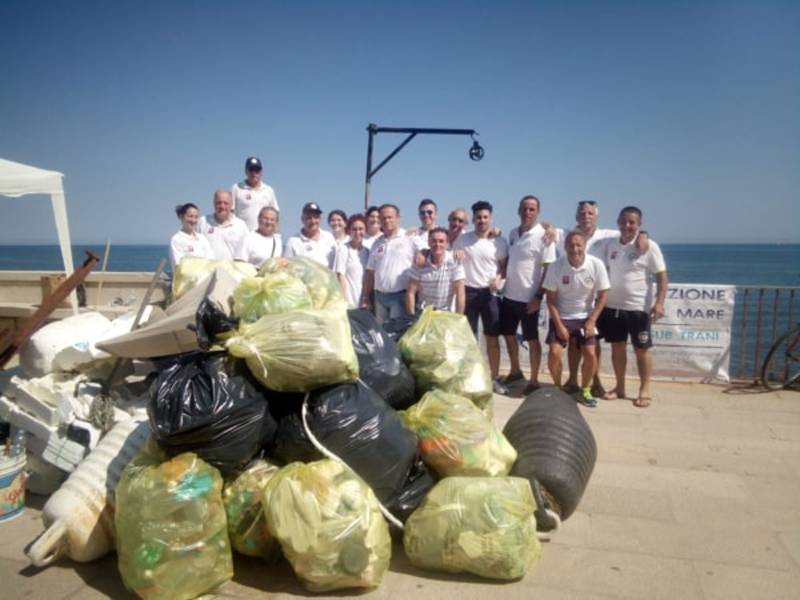 Grazie all'utilizzo di otto sub, hanno ritrovato in mare materiale edile, finito in mare per le burrasche, consegnato alla ditta che si sta occupando del restauro del castello Svevo. Tanti i rifiuti che sono stati portati via dal mare: 30 bustoni di plastica, alluminio, carta e cartone.