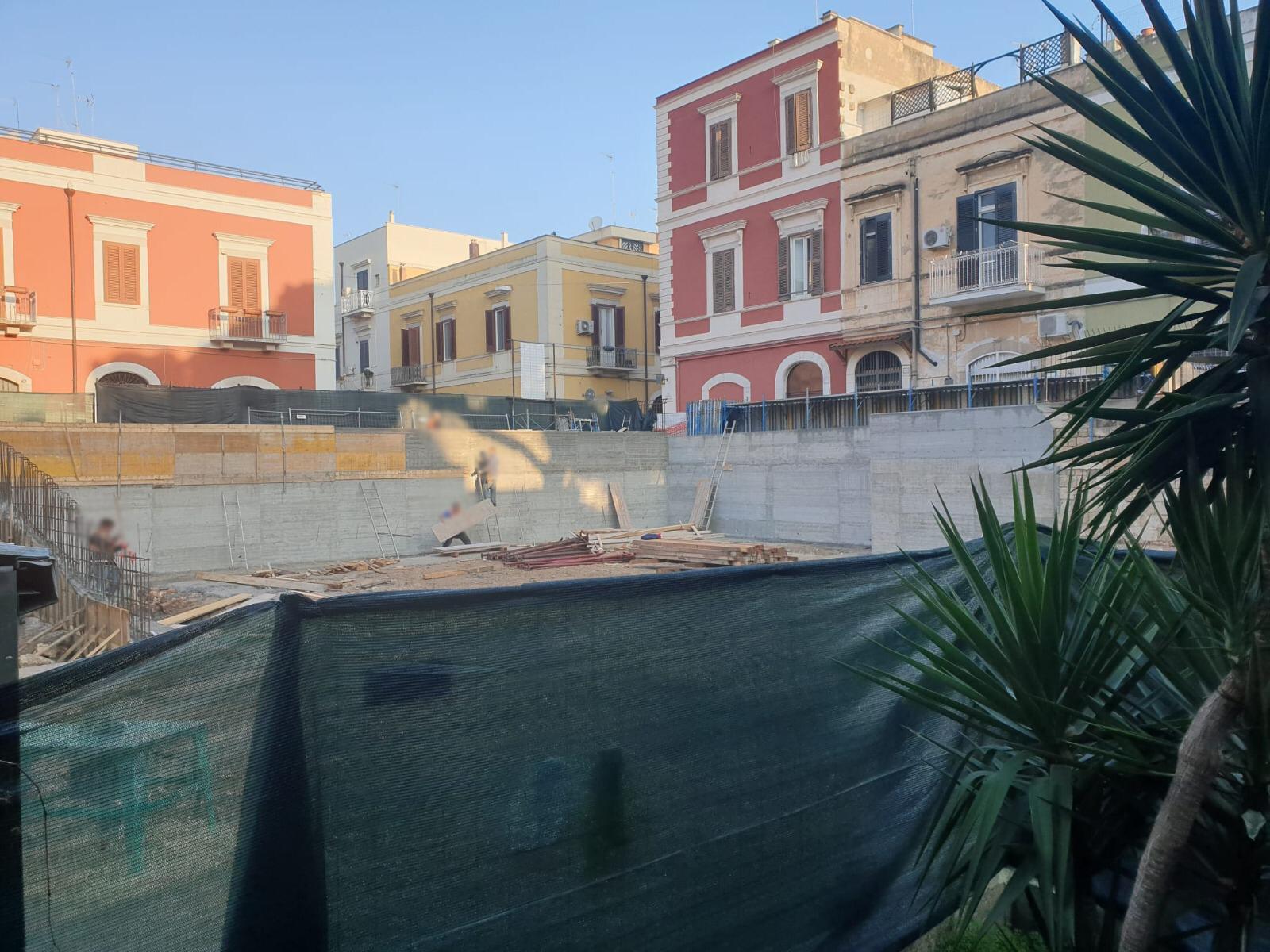 Proseguono i lavori a seguito dell'intervento di demolizione totale controllata di una palazzina pericolante situata nell'area dell'ex ospedale pediatrico, e precisamente in vico de Bramo, angolo via Marsala.