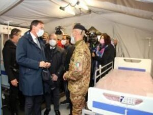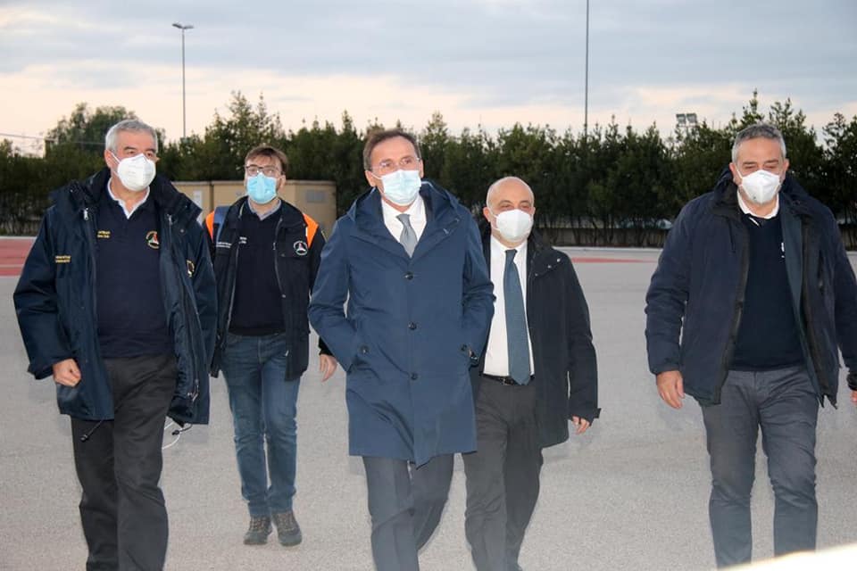 Il ministro degli Affari regionali Francesco Boccia e il capo della protezione civile Angelo Borrelli ieri sono stati in visita a Barletta in visita alla postazione medica avanzata che la Marina Militare Reggimento San Marco sta allestendo presso l'ospedale Dimiccoli di Barletta.