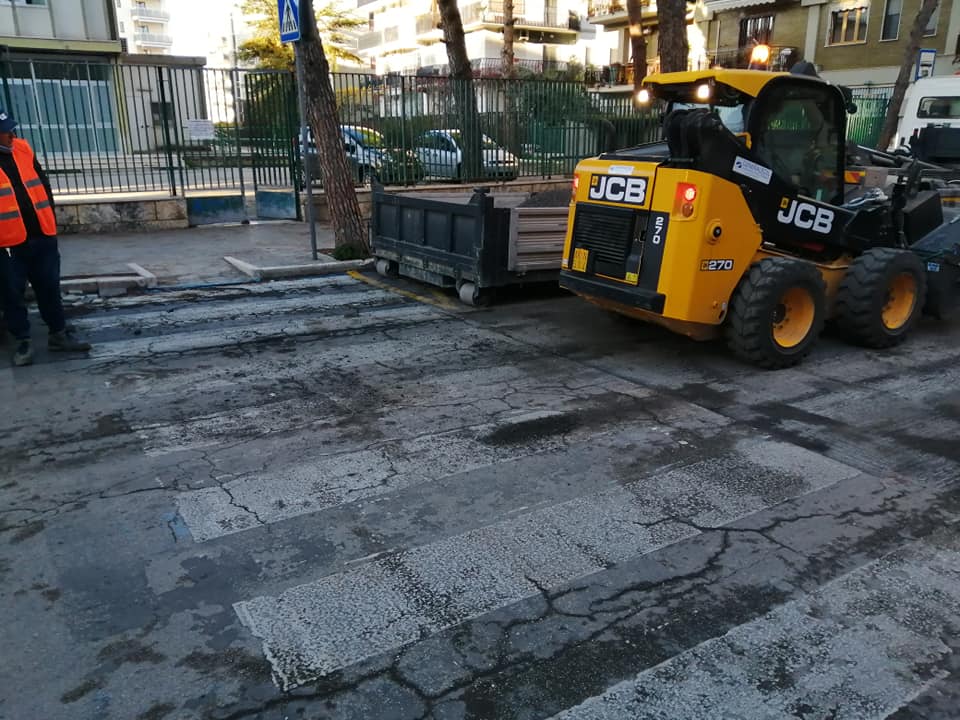 In via Statuti Marittimi, invece, nel tratto compreso fra piazza Plebiscito e piazza Quercia, disseminato da tempo di buche costantemente rattoppate, in questo caso si è proceduto ad una vera e propria scarificazione dell'asfalto prima di stendere un nuovo tappeto uniforme.