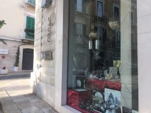 Indagano i Carabinieri sul tentato furto in una gioielleria in piazza Libertà, tra via Caporale e via Mario Pagano, a Trani. Questa notte malviventi hanno tentato di accedere all’interno del locale, infrangendo una delle vetrine.
