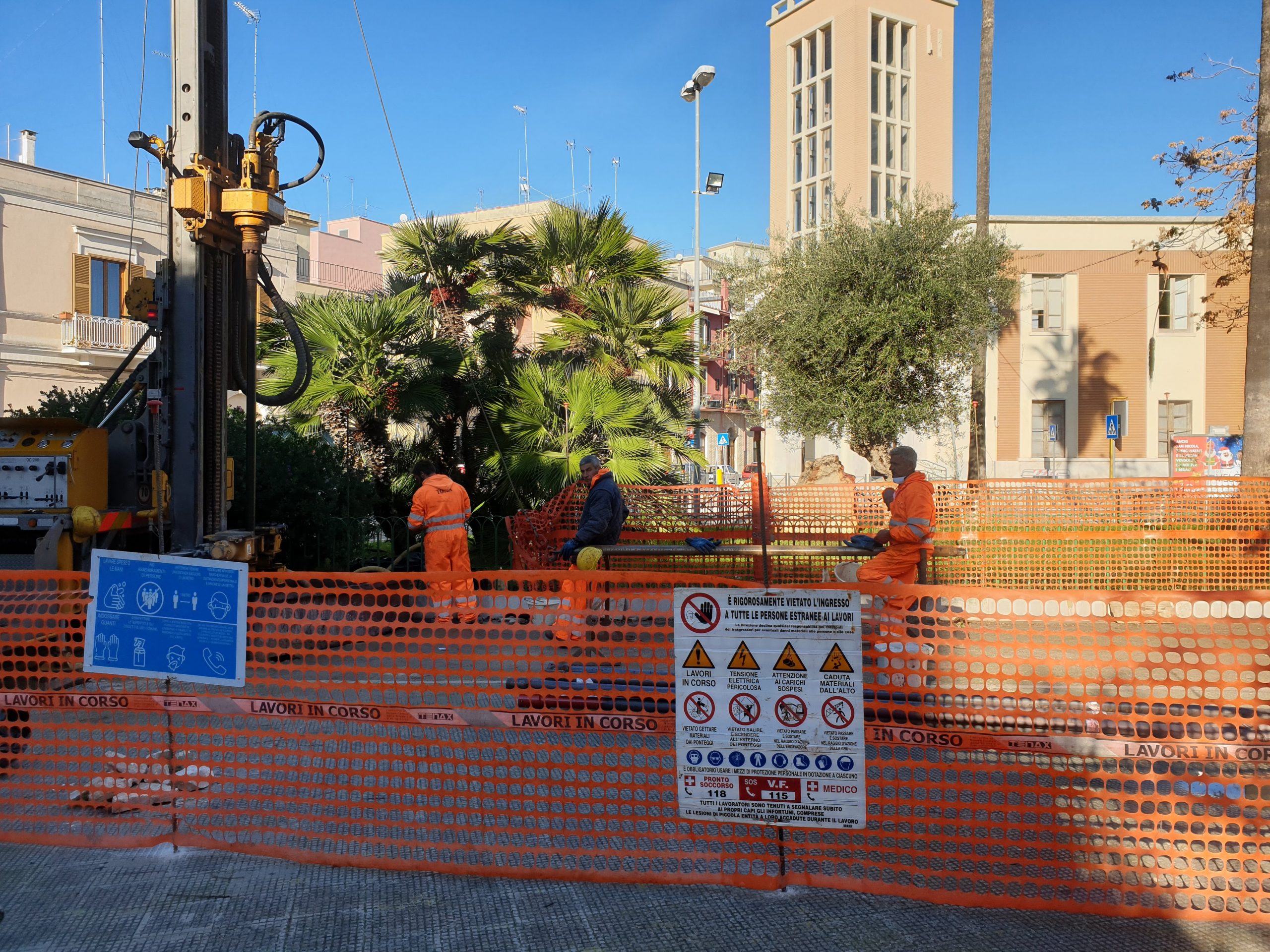 È la manutenzione dell'impianto di protezione catodica del gas metano il motivo dei lavori in corso di svolgimento in piazza Natale D'Agostino, nei pressi del Liceo classico Francesco De Sanctis. L'intervento è a cura della ditta Abele Toma trivellazioni per conto di 2i rete gas, distributore del metano nell'intero territorio cittadino.