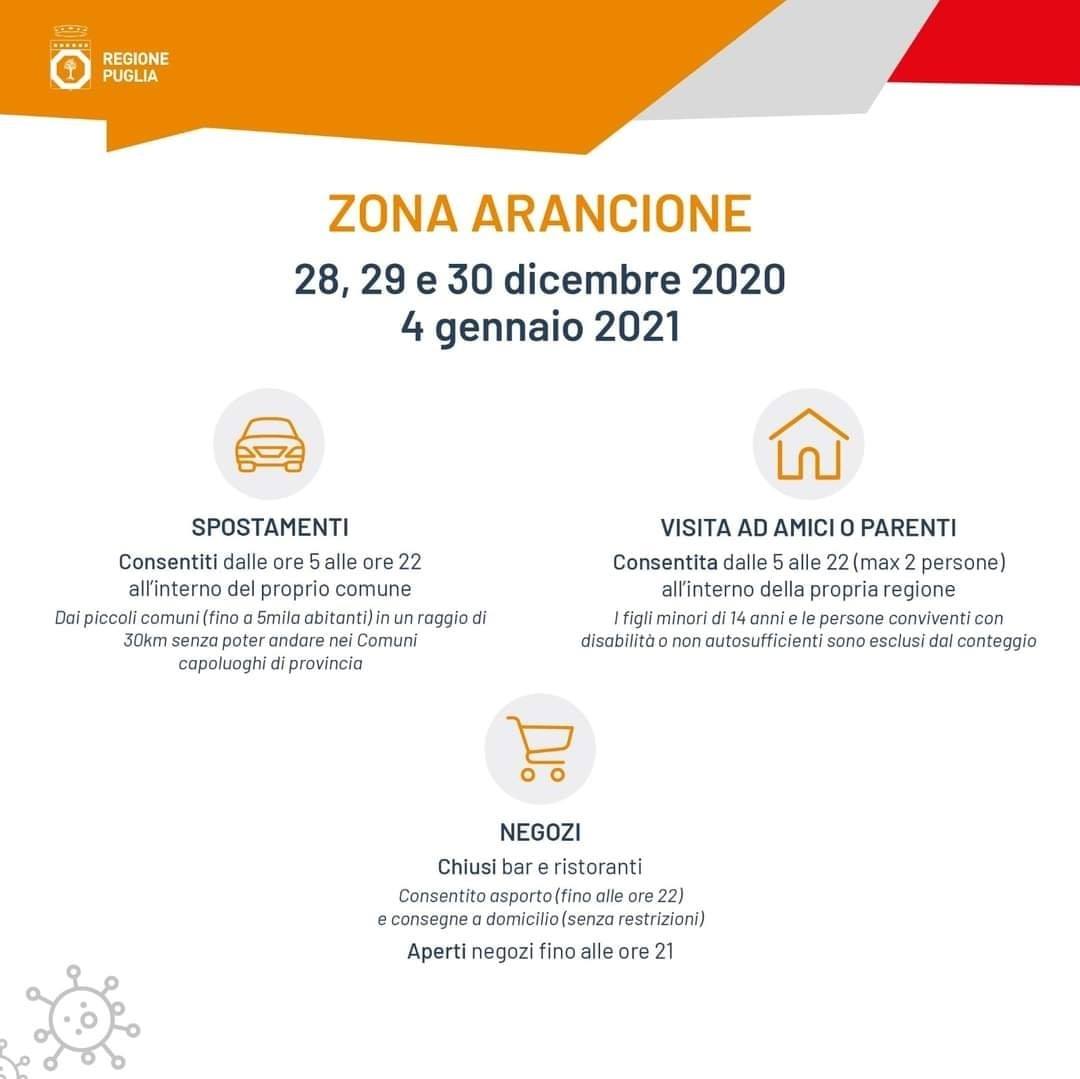 Da oggi e fino al 30 dicembre l'Italia torna in zona arancione. Dalle 5 alle 22 non è necessario motivare gli spostamenti all’interno del proprio comune. Per spostamenti verso altri Comuni, nonché dalle 22 alle 5 anche all’interno del proprio comune, si deve essere sempre in grado di dimostrare che lo spostamento rientra tra quelli consentiti, anche mediante autodichiarazione che potrà essere resa su moduli prestampati già in dotazione alle forze di polizia statali e locali.